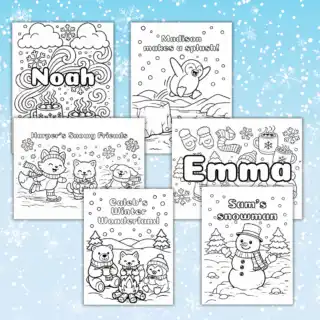 Our free printable name winter coloring pages can be easily personalized to include your child’s name! Name-free version also available.